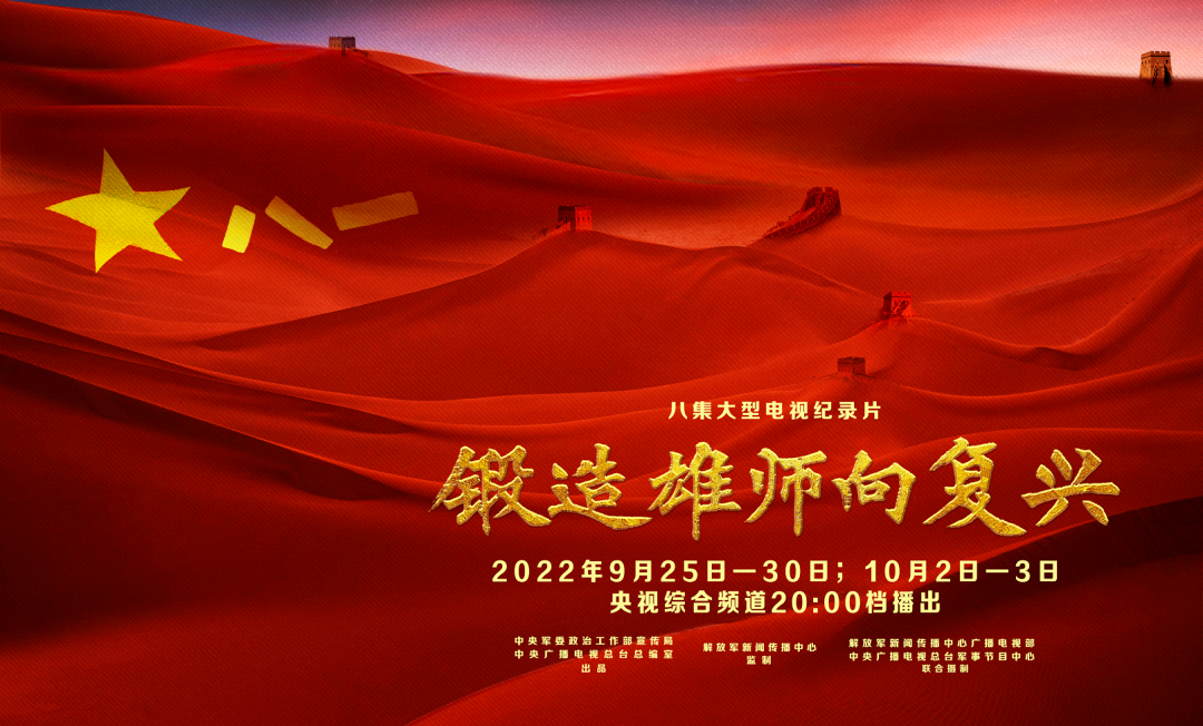经中央军委批准,中央军委政治工作部组织拍摄了大型电视纪录片《锻造雄师向复兴》。该片从9月25日—30日、10月2日—3日,在中央电视台综合频道晚8点档黄金时段播出,每天1集,国防军事频道等其他频道重播,中央主要新闻网站、重点门户网站和“学习强国”平台等同步推出。