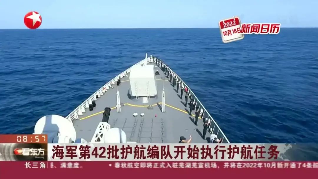 10月18日,中国海军第42批护航编队开始执行护航任务