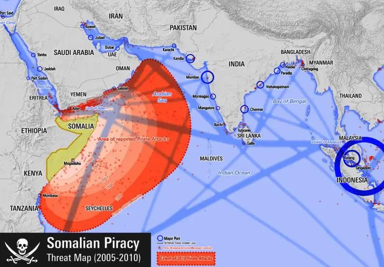 自1991年以来,索马里海域附近就成为世界上公认海盗最猖獗、最泛滥的区域,同时也是被国际公认的最危险的海域之一。