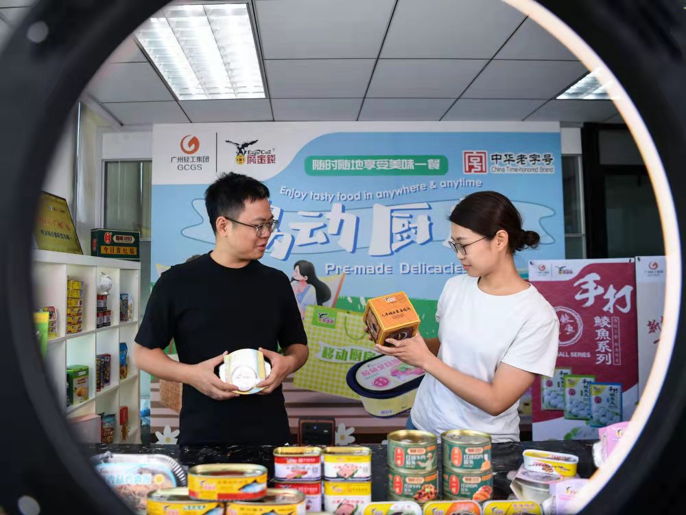 场景化直播、数字化推广等“花式推介”升级。轻触鼠标,来到“移动厨房”。户外场景中,广州鹰金钱食品集团有限公司员工刘倩雯化身料理能手,她把鲮鱼丸下锅,用英文提醒炖煮时长,接着又拿起一罐自热汤,旋转扭动底部加热。鹰金钱副总经理邹日进说:“公司上线VR展厅,并结合预制菜潮流推出‘移动厨房’,以直播做菜让客户直观地了解新产品。”