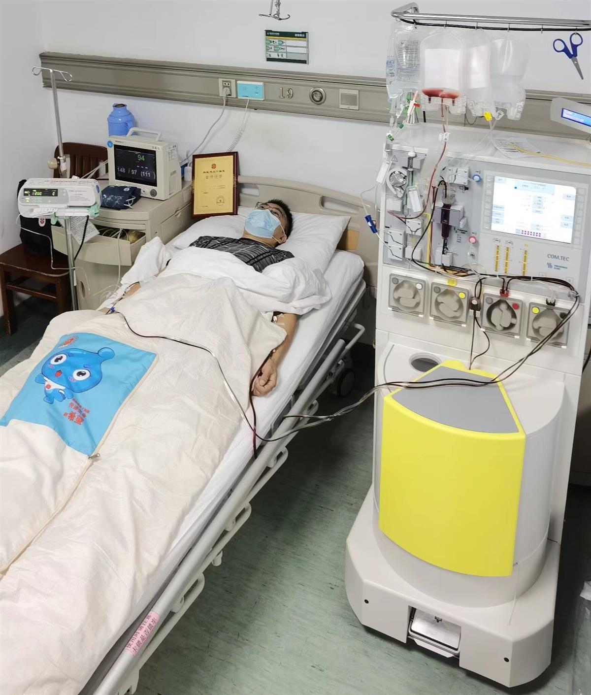 王刚(化名)正在捐献造血干细胞(通讯员章晟供图)