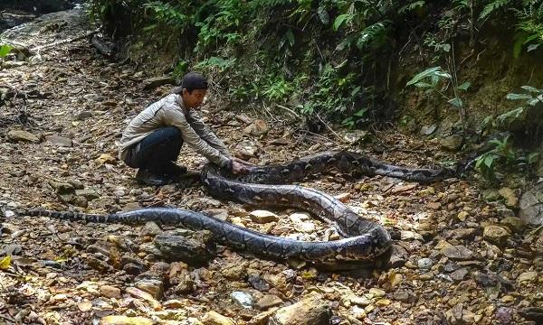 印度尼西亚金宝一个村庄附近一条 9 米长的蟒蛇