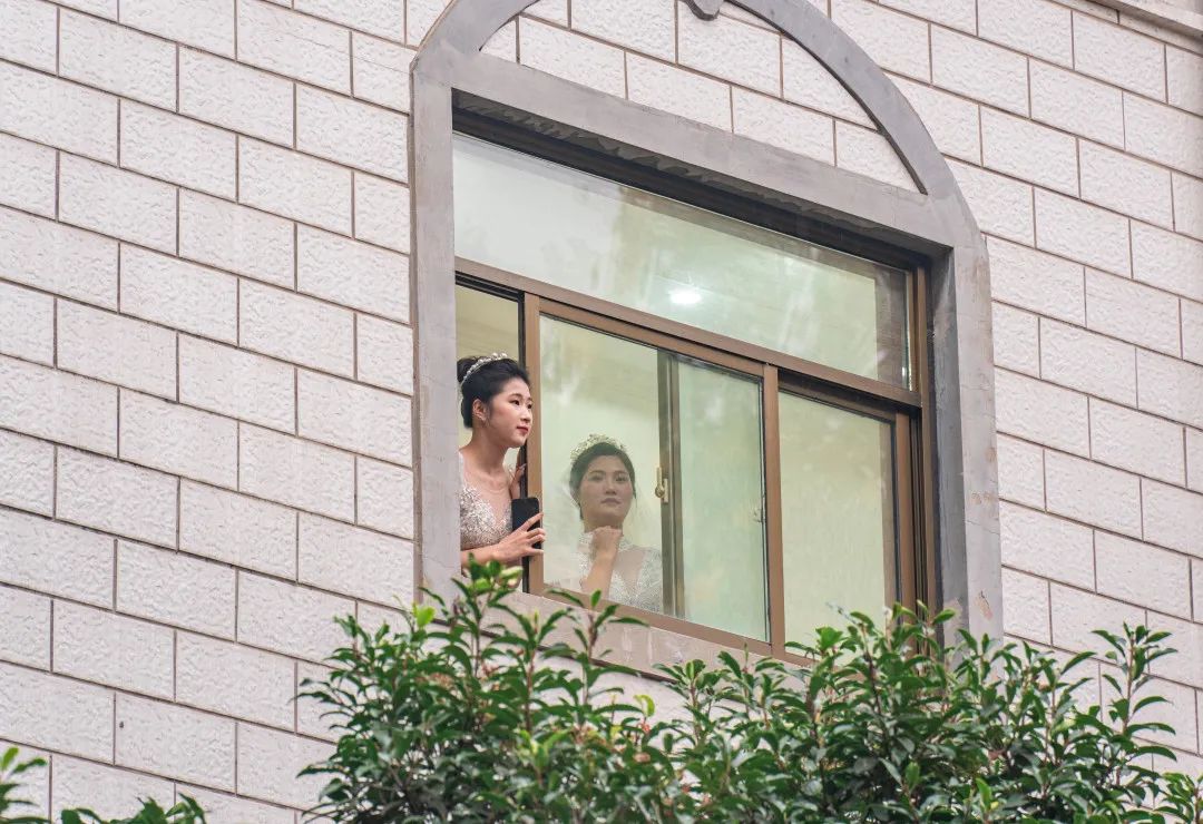 新娘身着纯白婚纱
