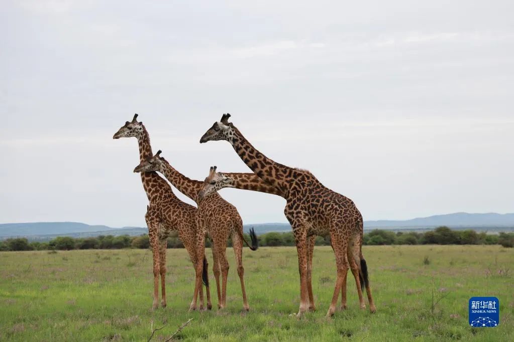 2月12日,在坦桑尼亚塞伦盖蒂国家公园,几只长颈鹿正在张望。