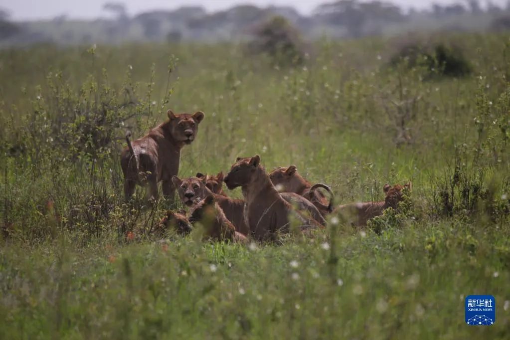 2月11日,在坦桑尼亚塞伦盖蒂国家公园,狮群正在进食。