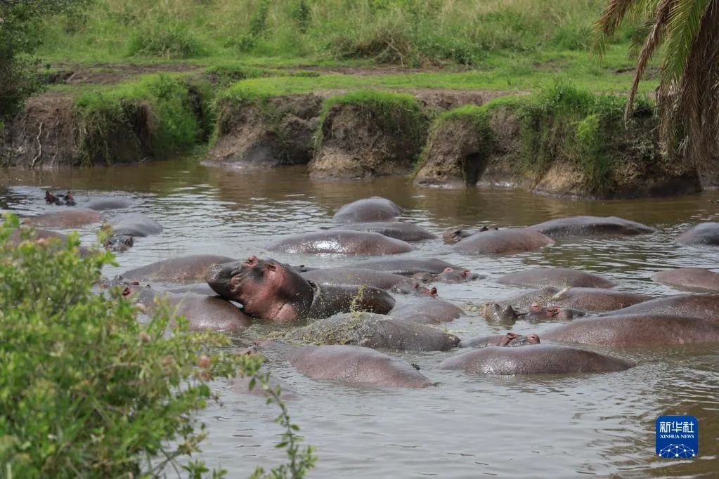 这是2月10日在坦桑尼亚塞伦盖蒂国家公园拍摄的河马群。