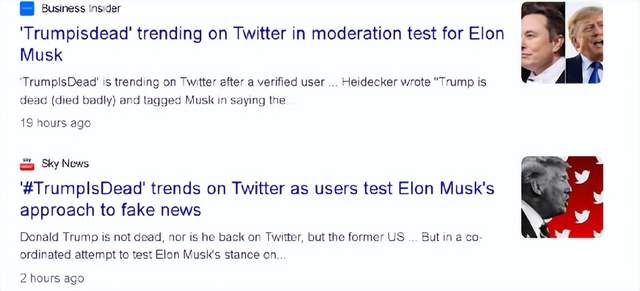 因此,从多家美国媒体的报道来看,今天刷爆“推特”的“特朗普已死”的贴文,其实是讨厌马斯克的人,对他进行的一种挑衅式的考验。
