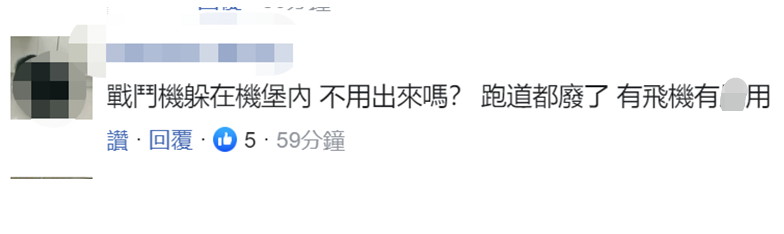 有网友持类似观点:战斗机躲在机堡内不用出来吗? 跑道都废了,有飞机有什么用?