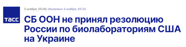 据塔斯社报道,根据俄方提出的决议草案,联合国安理会15个理事国应成立一个委员会,针对乌境内生物实验室开展的活动,调查美国和乌克兰是否遵守《禁止生物武器公约》规定的义务。该委员会应在11月30日前向安理会提交调查报告,并在日内瓦于11月28日至12月16日期间举行的《禁止生物武器公约》第九次审议大会上报告调查结果。
