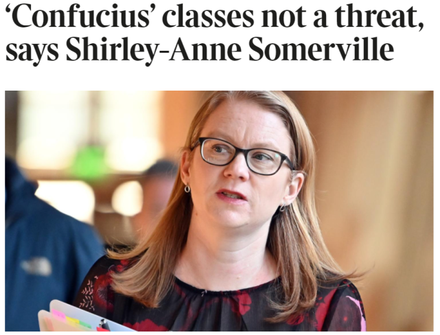 虽然苏格兰内部包括政界存在一些反对声,萨默维尔本人甚至因为支持孔子学院而受到攻击,但她仍然表示孔子学院和孔子课堂“只是语言和文化机构”,并非什么“国家安全风险”,或所谓“给了中国政府对苏格兰教育施加过度影响的机会”。