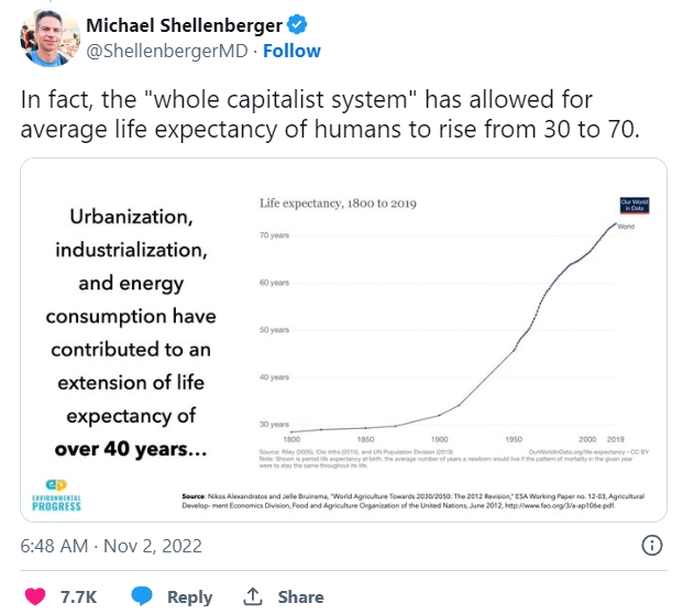 《泰晤士报》还援引了一位保守派评论家的话称,“过去40年里,是资本主义让全球实现了现代化和城市化,并在更长的时间里把人类预期寿命从30岁提高到了70岁”。