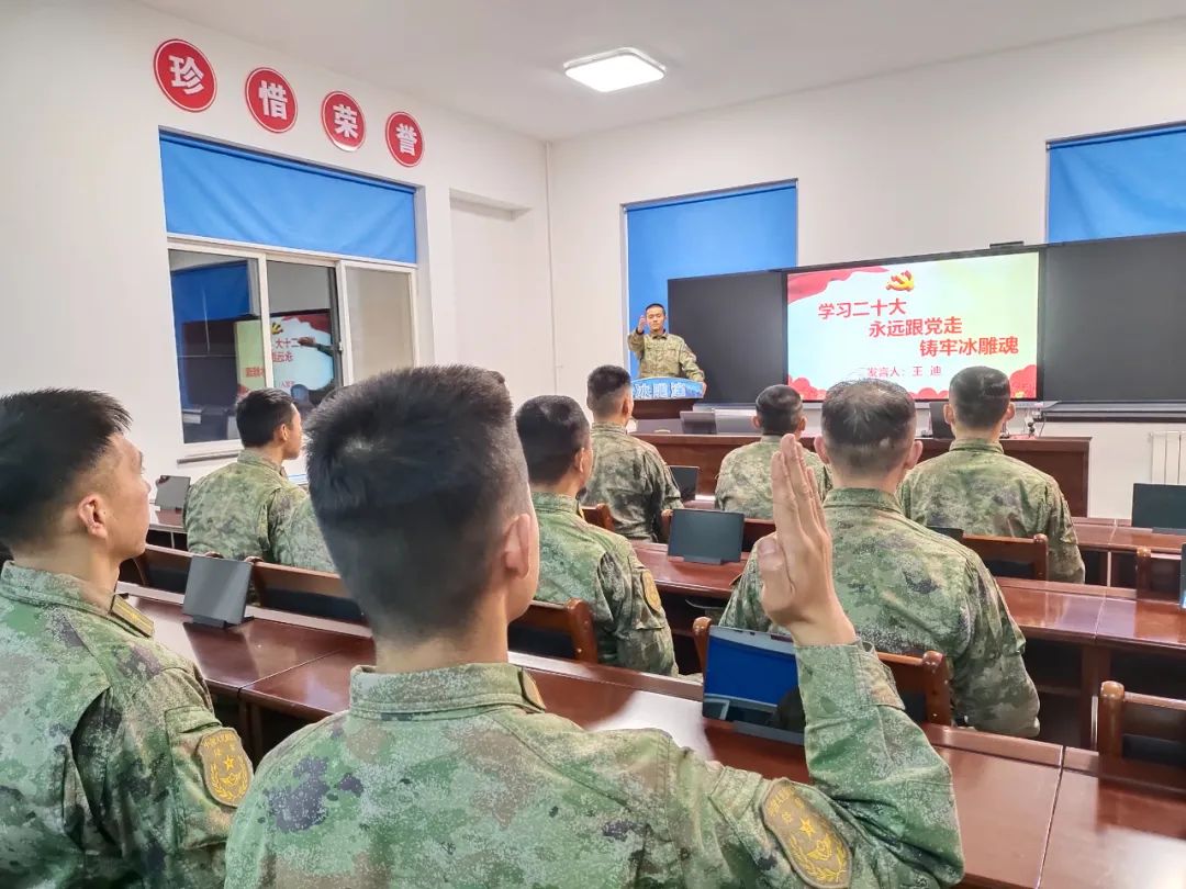 蓝图已经绘就,号角已经吹响。新征程,再出发。党的二十大胜利闭幕后,“冰雕连”官兵积极强化思想引领,提高思想认识,在学思践悟中深入学习宣传贯彻党的二十大精神。