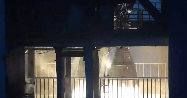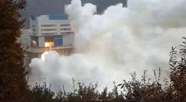 我国推力最大的80吨级液氧甲烷发动机首台整机热试车画面