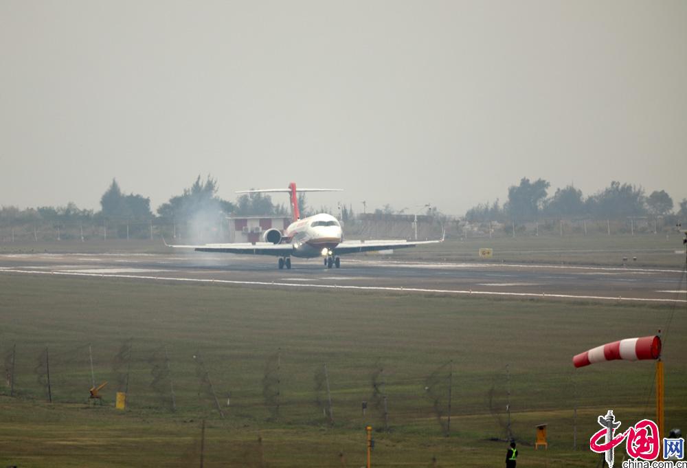 中国商飞ARJ21抵达珠海金湾机场 。中国网 杨佳摄影