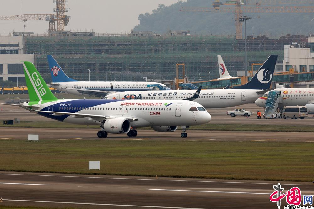 刚刚取得适航证的国产大飞机C919落地金湾机场。中国网 杨佳摄影