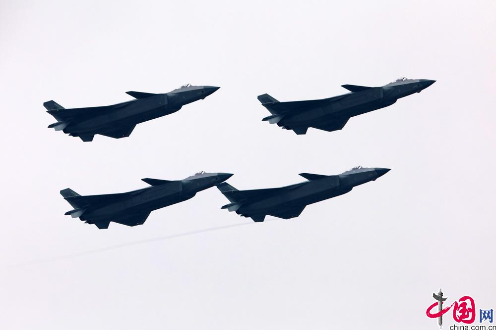 另外一个值得关注的焦点还是我国自主研制的五代机——歼-20。当日,有四架歼-20飞抵金湾机场,进行了编队飞行训练。数量的增加,一方面是大国空军的展现装备自信的一种表现,另一方面也是对飞行员驾驶技术及配合协作能力的一种考验。这四架歼-20均从外场飞来训练,其中两架在表演结束后落地,在加油后双机起飞离场。