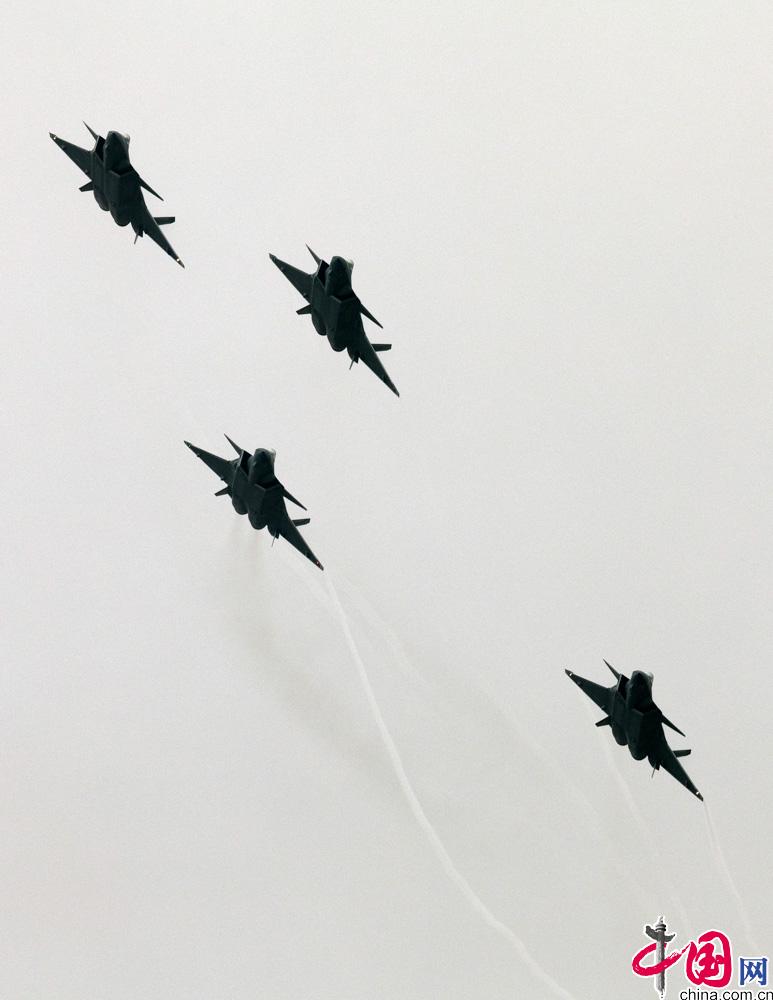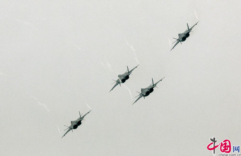 架歼-20飞抵珠海金湾机场,训练结束后其中2架落地加油后离场。中国网 杨佳摄影