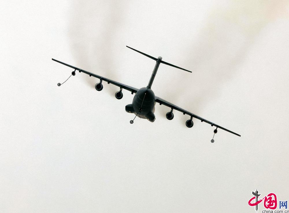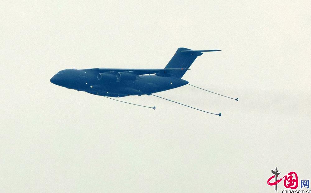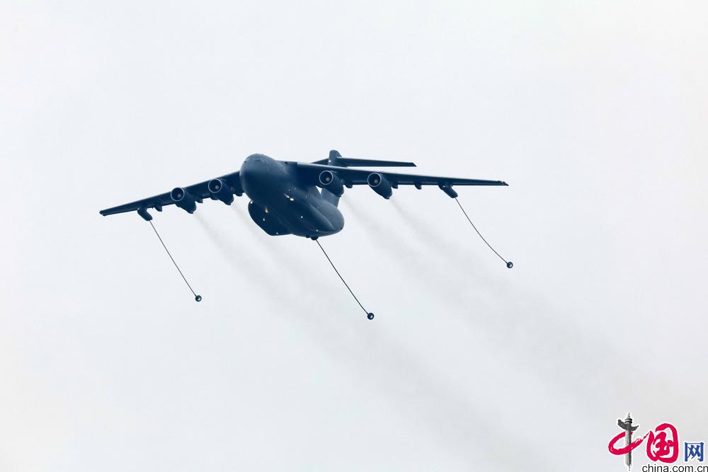 运油-20在金湾机场起飞训练,飞行中释放出3根加油软管。 中国网 杨佳摄影