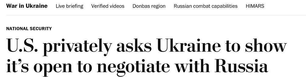 《华盛顿邮报》爆料:拜登政府私下鼓励乌克兰展现愿意与俄谈判意愿