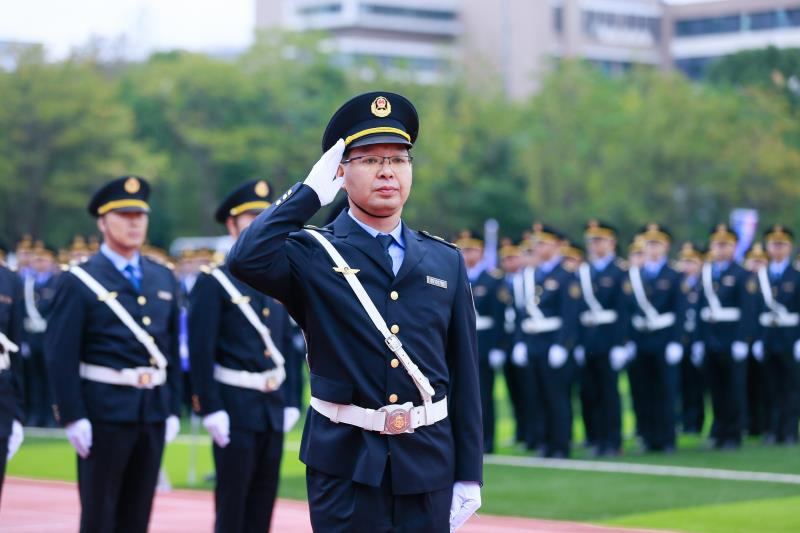“起步走!”、“向左转!”“向右看齐!”、“跑步走,一二一,一二一!”11月4日,2022年宁波市交通运输行政执法队列会操比武验收在宁波工程学院热火朝天地展开。350多名交通执法队员齐聚一堂,笔挺的军姿、洪亮的口令,整齐划一的步伐,走出了交通执法队员的精气神和战斗力。