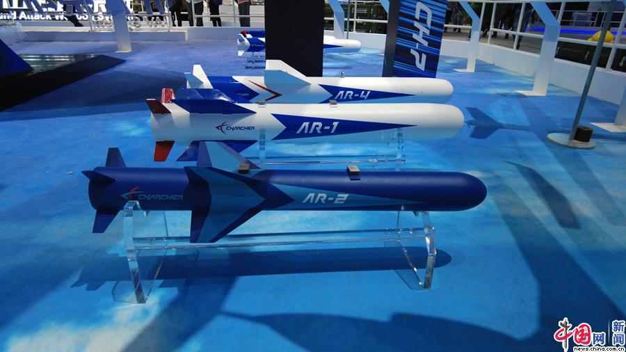 “彩虹家族”AR系列空对地导弹在珠海国际航展中心7号馆展出。谷凤豪 摄 中国网 发