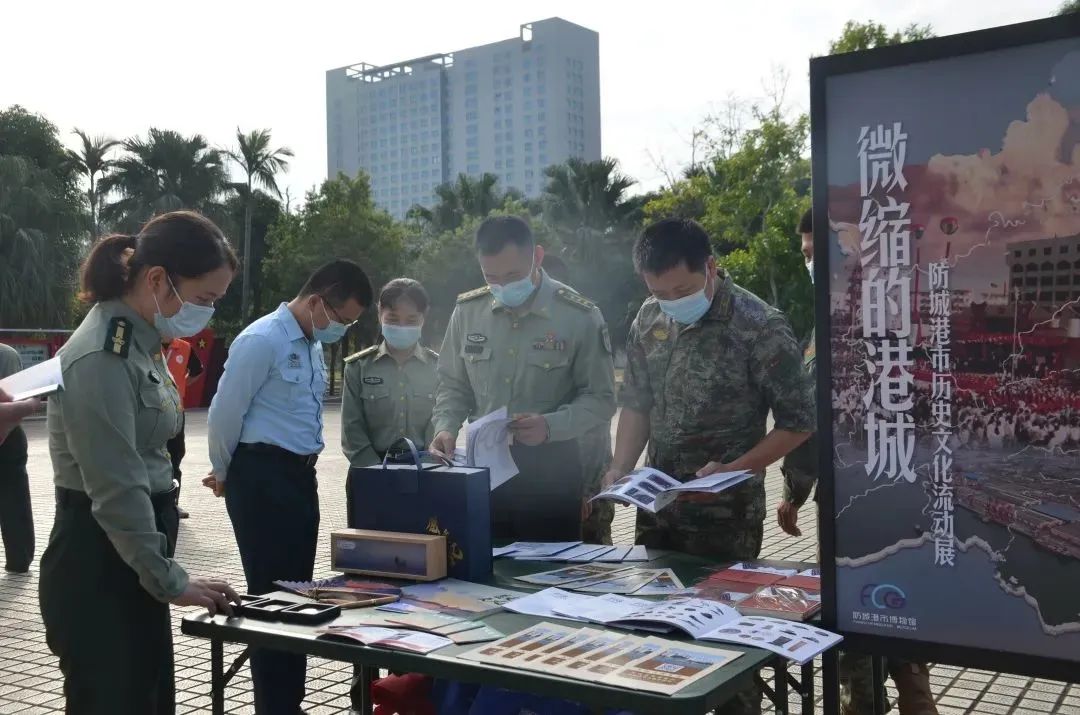 金秋送爽港城处,驻地来传浩史闻。近日,为学习贯彻党的二十大精神,防城港军分区采取官兵喜闻乐见的形式,联合防城港市博物馆,在防城港军分区机关楼前广场,举办了一场别开生面的“微缩的港城”观摩会。只见广场展报上,一件件青铜器历历在目,海上胡志明小道起点、潭蓬运河石刻、石斧、蚝砺啄等充分展示了防城港是一座拥有厚重历史的城市,防城港是“一带一路”面向东盟的“海陆双通道、南向门户城”,在讲解员解说下,带领官兵穿越时空,感悟港城发展历史,聆听先辈建港伟业,用驻地红色历史,用先辈奋斗精神激励官兵扎根基层,建功立业。