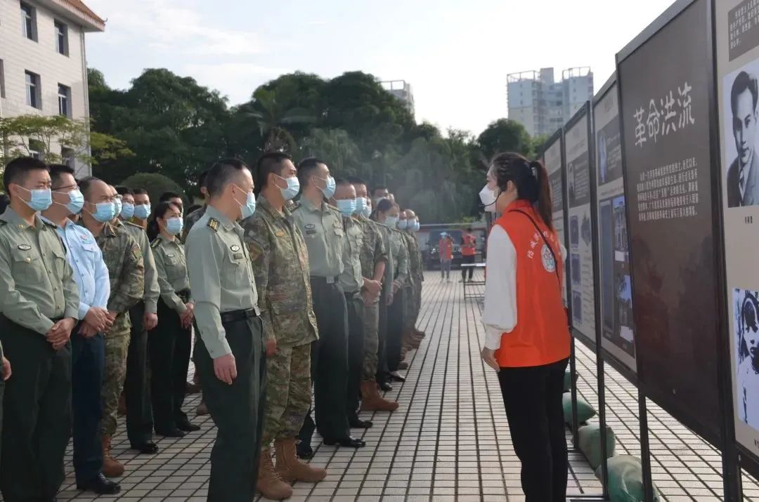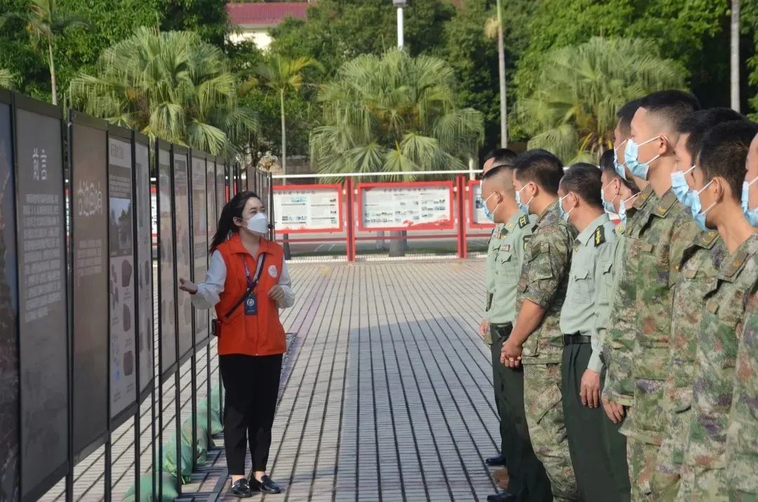 和边美海风光旖,旧事雄才热血郎。伏波征南黑旗猎,今朝港阔向海强。防城港各族人民在抗击外辱,建立新中国的进程中,涌现出一批又一批英雄人物,广大官兵在聆听驻地红色历史部分时,纷纷感慨革命先辈的丰功伟绩,表示要继承先辈光荣传统,扛起守边守海的时代重任,为实现建军一百年奋斗目标而不懈奋斗,用港城的战史、战将、战例,立足岗位,奋斗强军。
