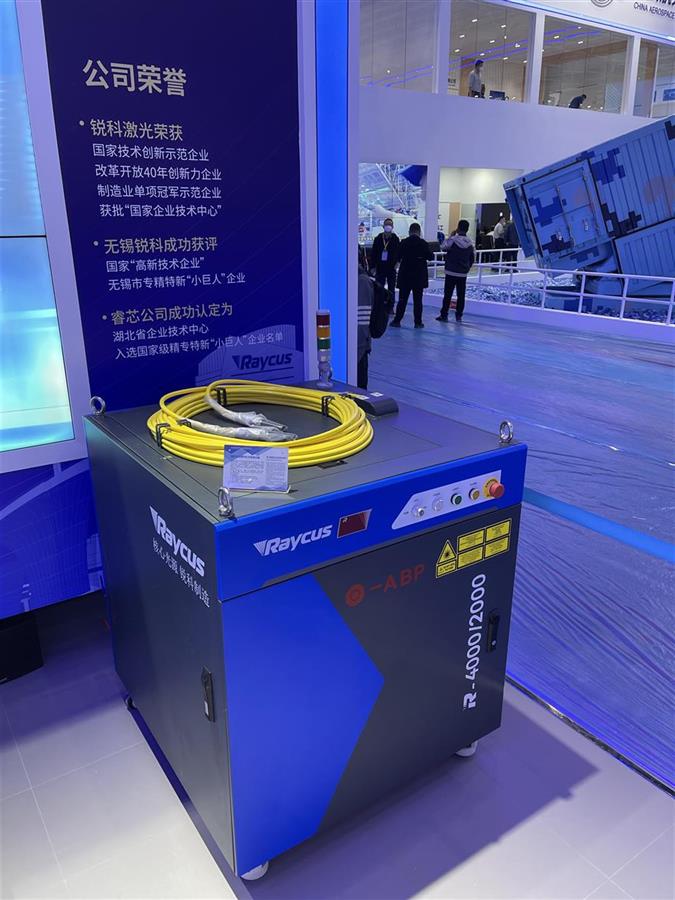 锐科激光作为国产光纤激光器龙头企业,集结顶尖技术团队辛勤打磨,专为航空航天等高端制造应用设计出了旗帜系列高端系列激光器,此次参展的3款旗帜产品包括旗帜系列4000/2000带光闸环形光斑激光器、旗帜系列1000W 3D打印光纤激光器和旗帜高能量单模块1000W清洗脉冲激光器。其中旗帜高能量单模块1000W清洗脉冲激光器进行了圆筒内壁清洗的动态展示,观众可在现场近距离感受其在清洗应用方面的“高效性”。