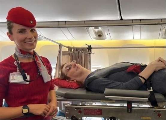 Rumeysa Gelgi患有基因疾病韦弗综合征,引起骨骼过度生长,大部分时间需要坐轮椅,或者扶着助步器短时间行走。这是她第一次乘坐飞机,从土耳其飞往旧金山。土耳其航空为其改造了其中一架客机,移除了六个座位,换上了一个特殊的担架。