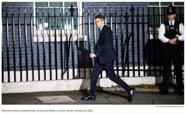 CNN指出,威廉姆森在本届英国政府的任期只持续了14天,他被认为是苏纳克的亲密盟友,在受到欺凌指控后面临越来越大的辞职呼声。