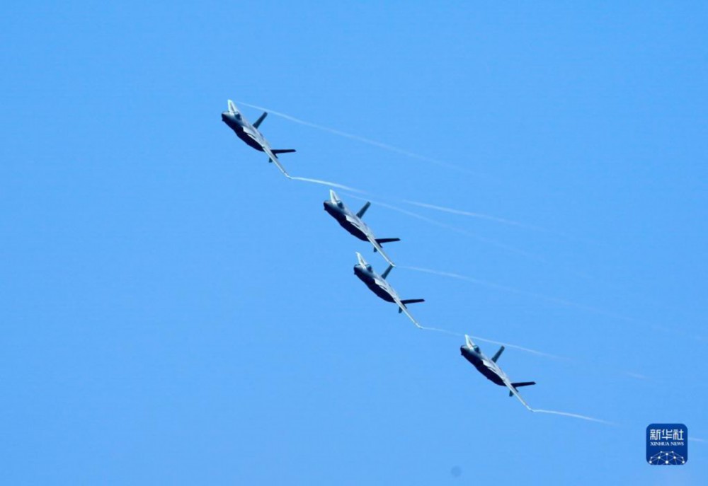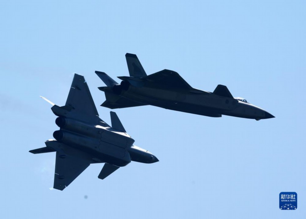 11月10日,空军歼-20战机在第十四届中国航展上进行飞行展示。新华社记者 张永进 摄