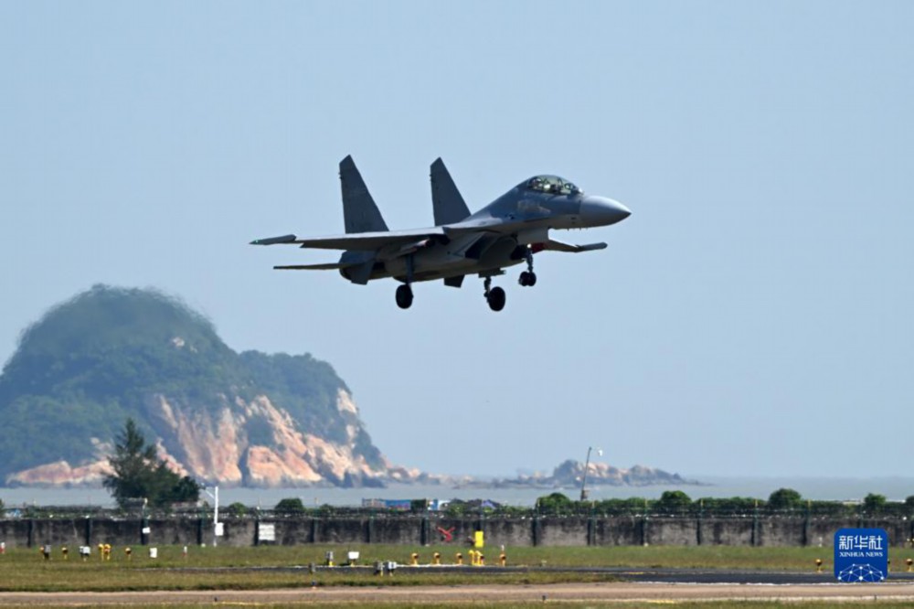 11月10日,空军歼-16战机在第十四届中国航展上进行飞行展示。新华社发(余红春 摄)