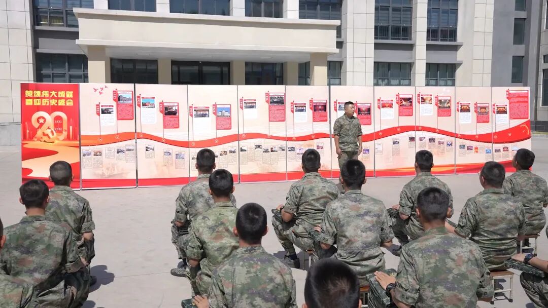 采取专题集中学、融入实践学、结合战位学等方式,及时更新宣传灯箱电子屏幕内容、悬挂条幅标语、各连队创办黑板报、组织观看图片展等,营造出处处有课堂、时时被熏陶、人人受教育的浓厚学习氛围。
