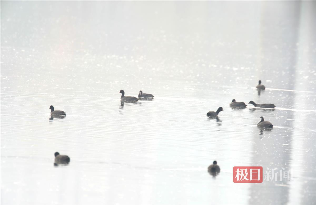 正在河面上游弋的白骨顶鸡(通讯员供图)