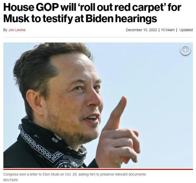 报道称,预计将担任众议院监督委员会主席的共和党议员詹姆斯·科默(James Comer)在采访中告诉该报,“我已经通过私下渠道与马斯克取得了联系,告诉他,我们希望他能到委员会面前来(作证)。我非常有信心他将提供更多信息,欢迎他到我们的委员会面前来。我们将为马斯克铺上红地毯。”