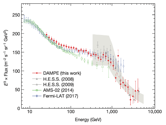 悟空卫星2017年发布的电子能谱(红色点)(图片来源:紫金山天文台)