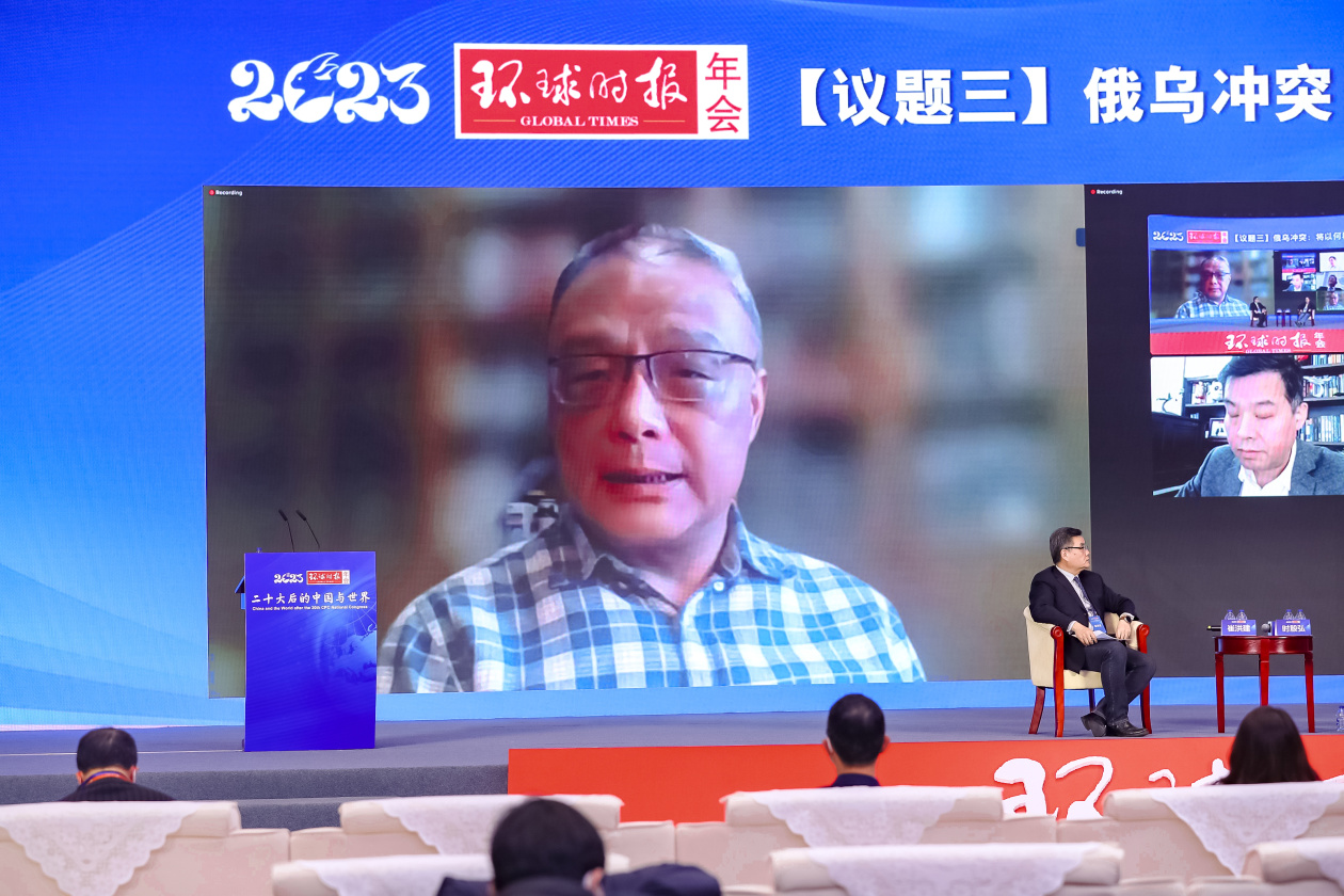 12月17日下午,在以“二十大之后的中国与世界”为主题的2023环球时报年会中,与会专家围绕“俄乌冲突:将以何种方式结束?”的议题展开精彩讨论。南京大学国际关系学院院长朱锋在发言中表示,乌克兰冲突的长期化不可避免,它对整个世界的困扰、冲击将进一步上升,主要会产生三大不确定因素。