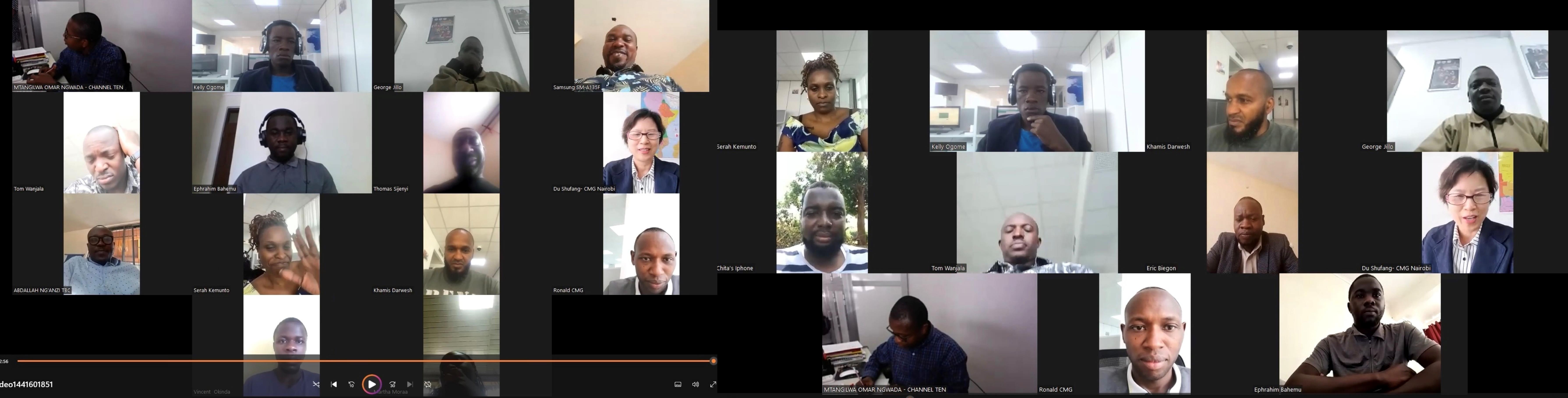 12月19日,中央广播电视总台亚非中心在肯尼亚举办“中国疫情防控情况线上说明会”,来自肯尼亚、坦桑尼亚、乌干达等东非国家主流媒体编辑记者出席活动。