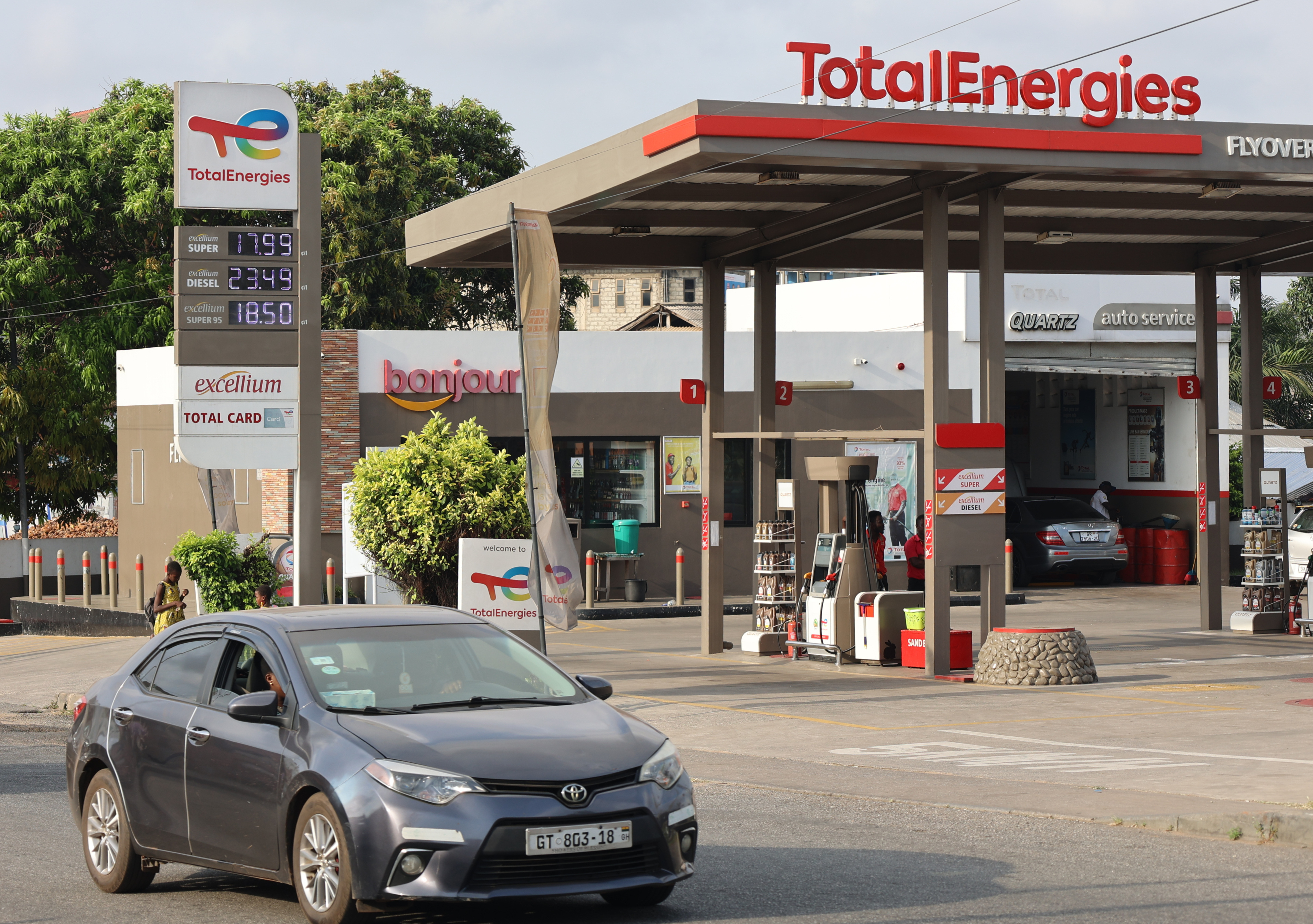11月10日,汽车驶过加纳首都阿克拉一家加油站。图片来源:新华社