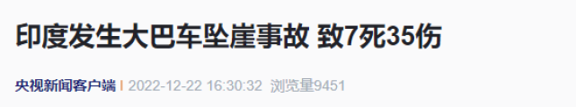 当地时间12月21日11时左右,一辆搭载学生的大巴车在距离印度曼尼普尔邦首府英帕尔约55公里处失控坠崖,已造成至少7名学生死亡,超35人受伤。
