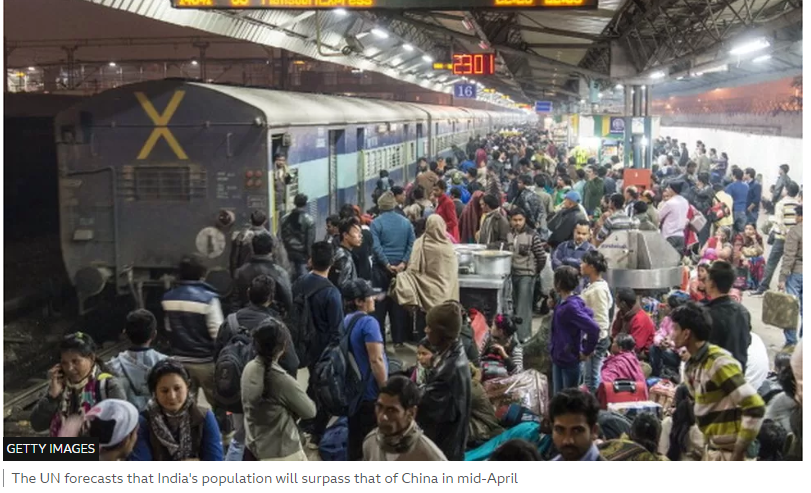 据美国有线电视新闻网(CNN)报道,联合国预测印度人口数量将在明年4月中旬超过中国,成为全球第一人口大国。