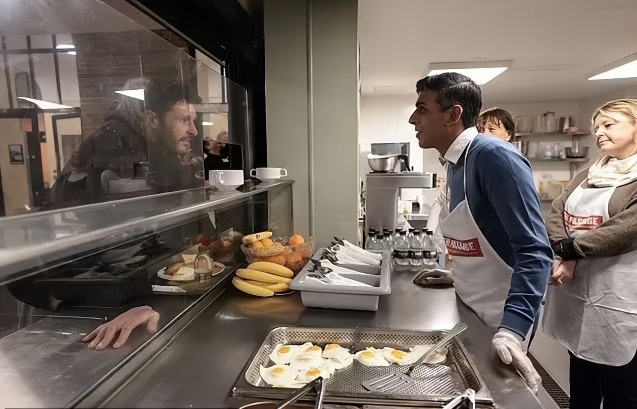 而最近,这样的一幕在平安夜的英国伦敦上演,主角换成了英国首相苏纳克。