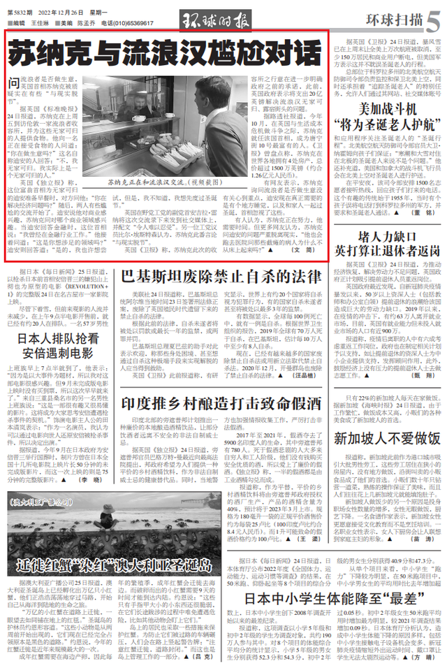 英国《卫报》称,苏纳克此次的收容所之行意在进一步明确政府之前的承诺,此前,英国政府表示将支出20亿英镑解决流浪汉无家可归、露宿街头的问题。
