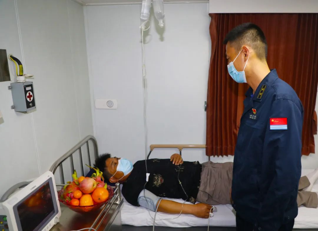 该船政委程广超则嘱咐炊事班烹饪病号饭,为许书壮加强营养补充。同时,积极与许书壮家人取得联系,并通过大队后方服务保障机制,与地方医院沟通联络,安排后续治疗事宜。