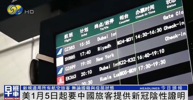 美国1月5日起要中国旅客提供新冠阴性证明