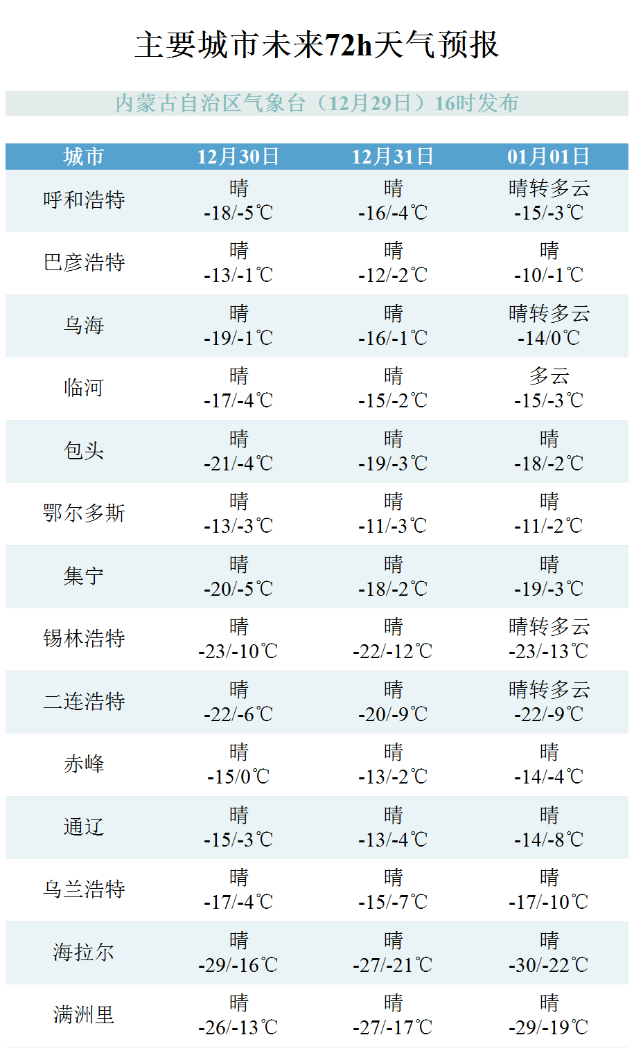 我区东北部地区多云,兴安盟西北部、呼伦贝尔市中部和北部部分地区有小雪,其余地区晴间多云;东北部地区气温下降4到6度。