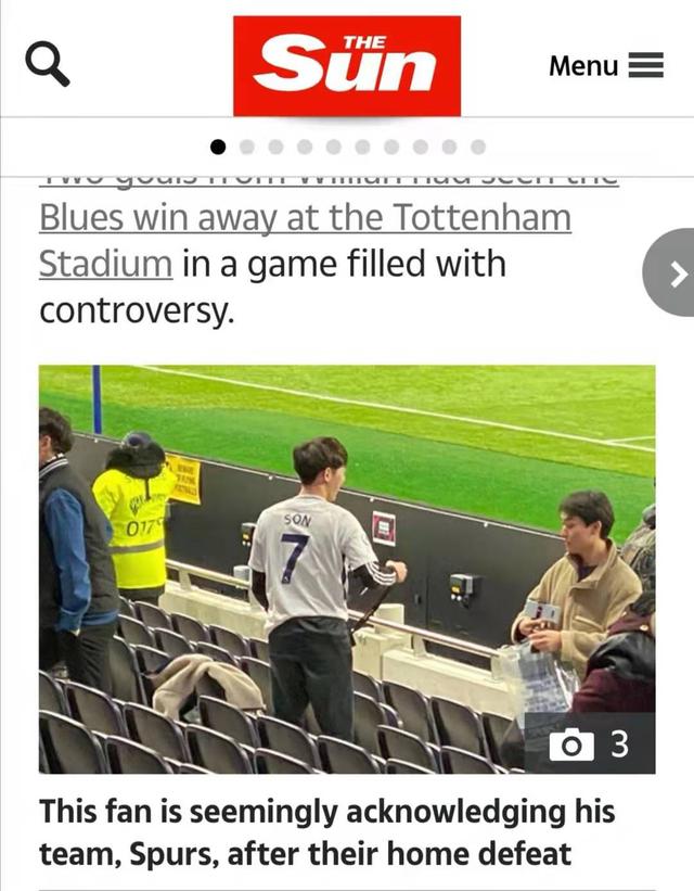 根据发型以及肤色来判断,这位球迷极有可能来自亚洲,而《太阳报》分析认为,可能是由于孙兴慜的行为让球迷感到失望,所以才会形成这样的举动,以此表达对比赛结果的不满。网友们也纷纷表达了自己的猜测,有的认为这是一名来自韩国的切尔西球迷,还有的则认为这位球迷是在进行某些社交媒体上搞笑视频的摆拍。