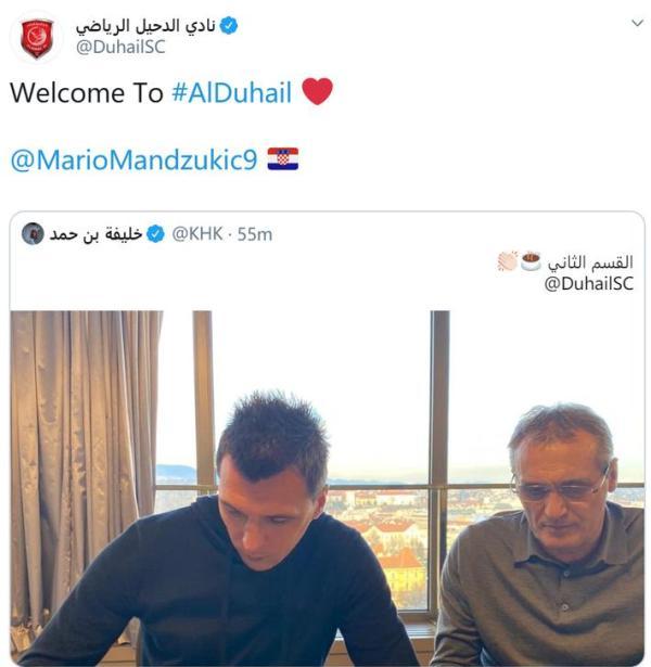 25日凌晨,卡塔尔杜海勒体育官方宣布,33岁的克罗地亚前锋曼朱基奇加盟俱乐部。此前据迪马济奥报道,曼朱基奇的转会费为500万欧元,双方签约18个月,年薪750万欧元。