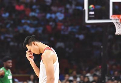易建联在篮球世界杯即将结束时神情失落。 本版照片由新华社发