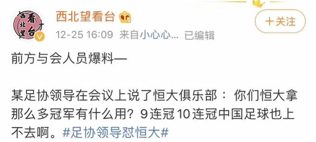 某领导的这句话话被单独拿出来,表面上看是把恒大和中国足球对立起来,流量显然巨大。